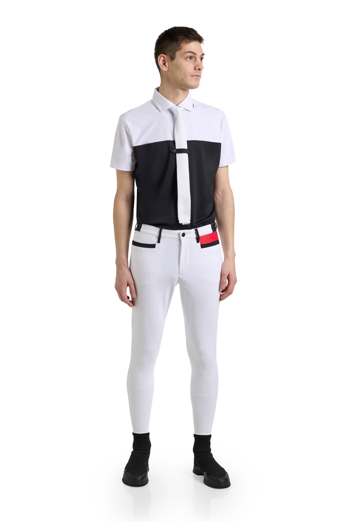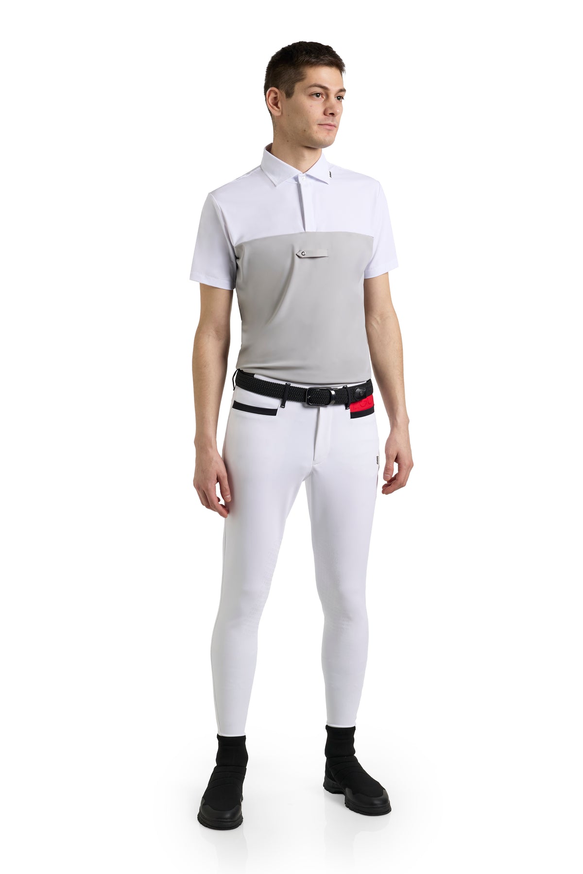 Designed with a flattering fit, blending elegance with functionality. Italian design elements and cutting-edge details are enhanced by a practical mesh panels, providing superior comfort and ventilation during performances. This highly technical show shirt is available in a sleek, contrasting color design, offered in four distinct shades to suit your style. Its tailored fit enhances your physique while emphasizing a modern, refined aesthetic, making it ideal for any horse-riding competition. It is machine washable for effortless care. Each EGO7 product comes with a care label featuring simple, easy-to-follow instructions to maintain its beauty and durability.