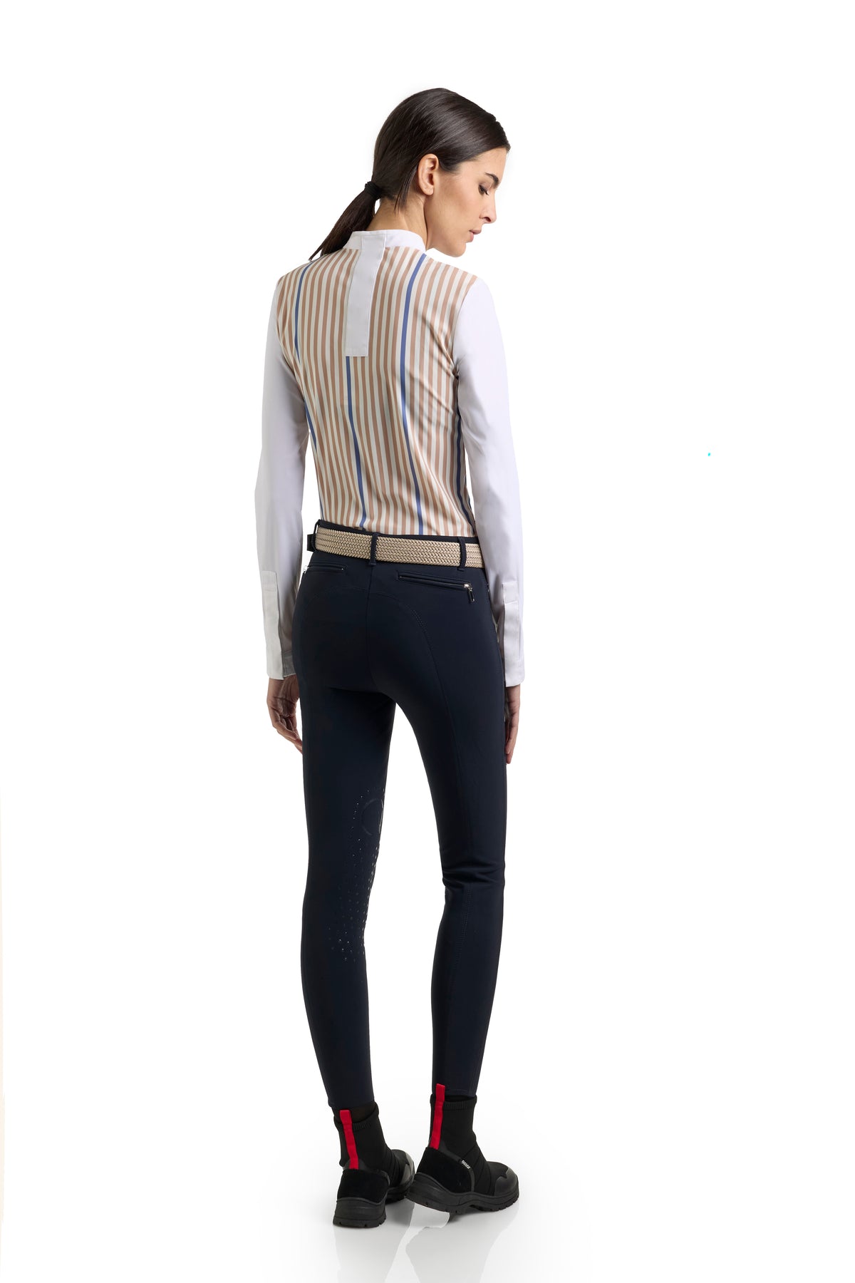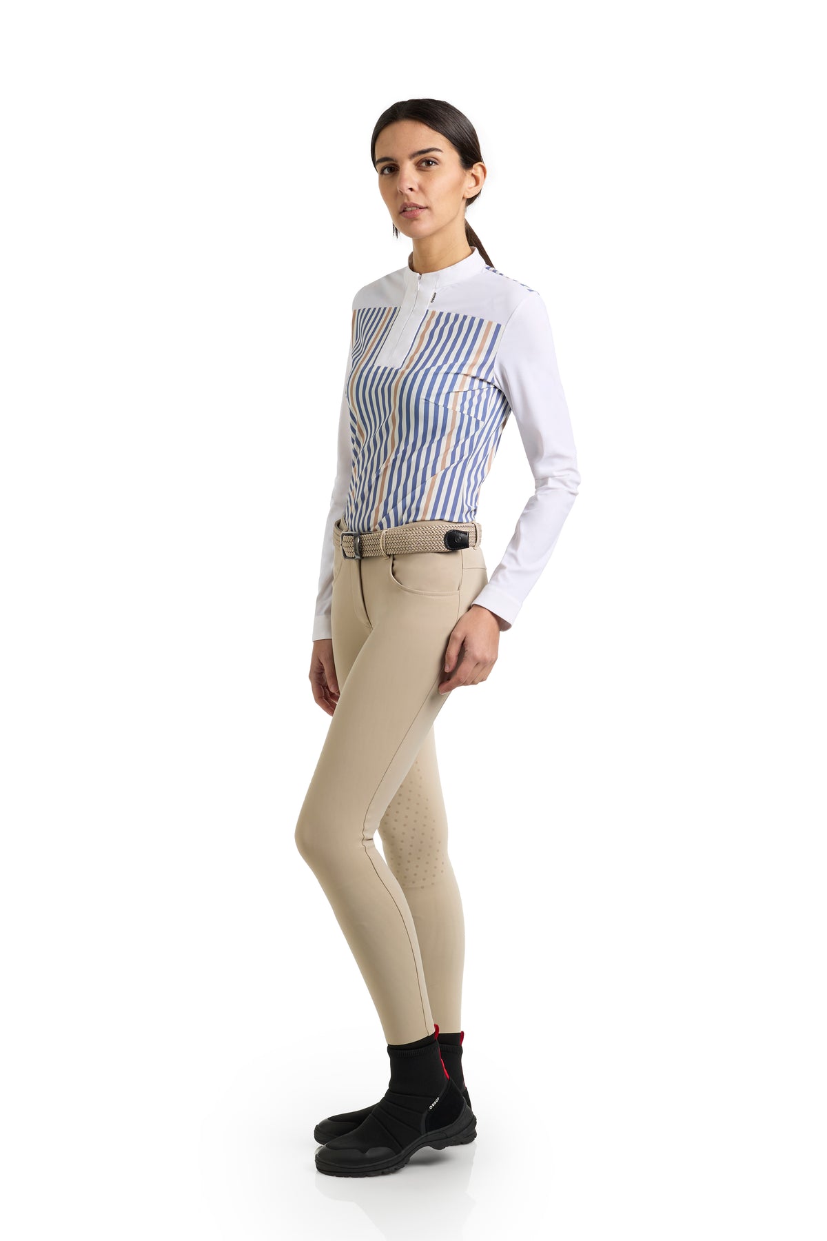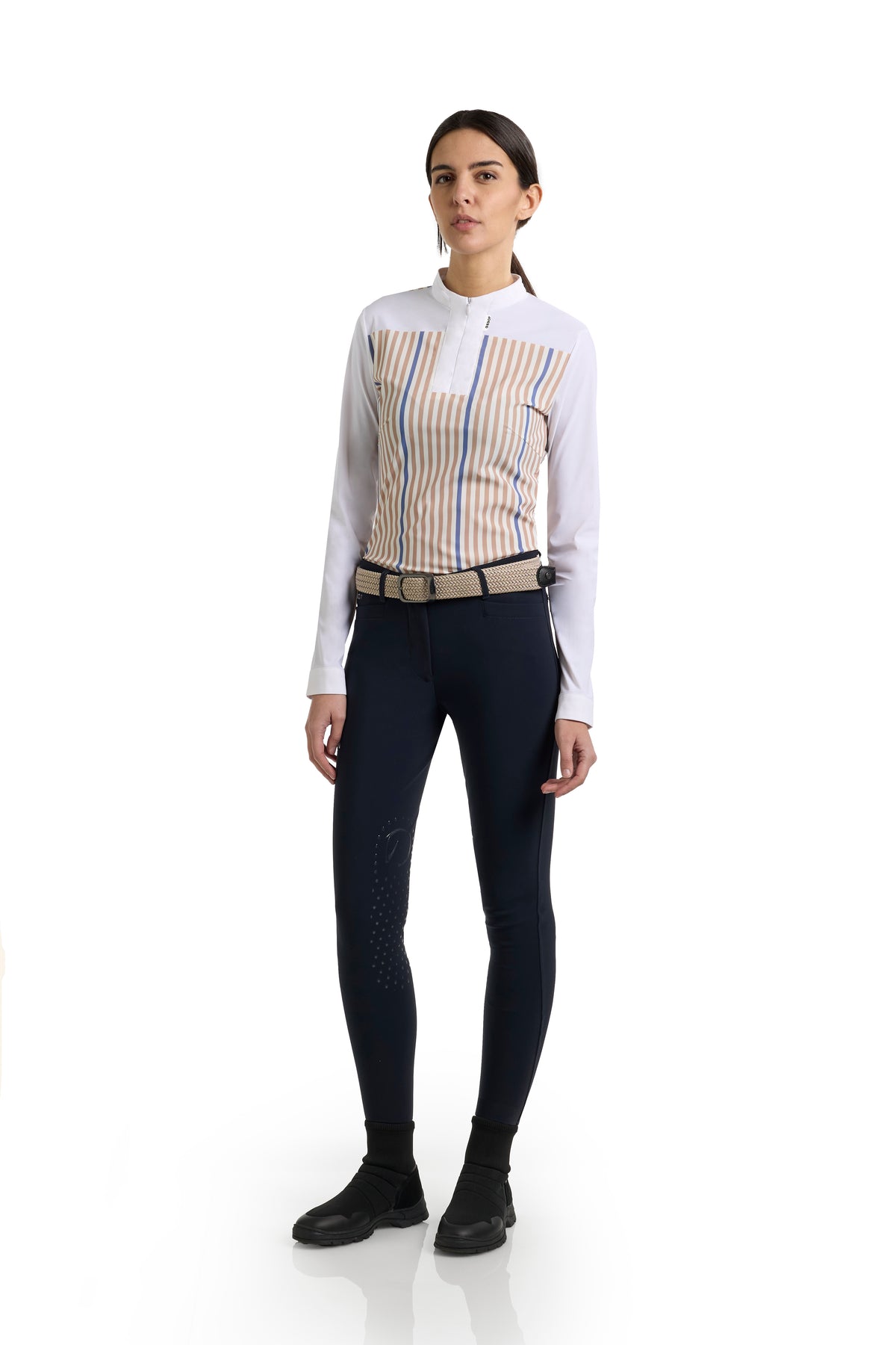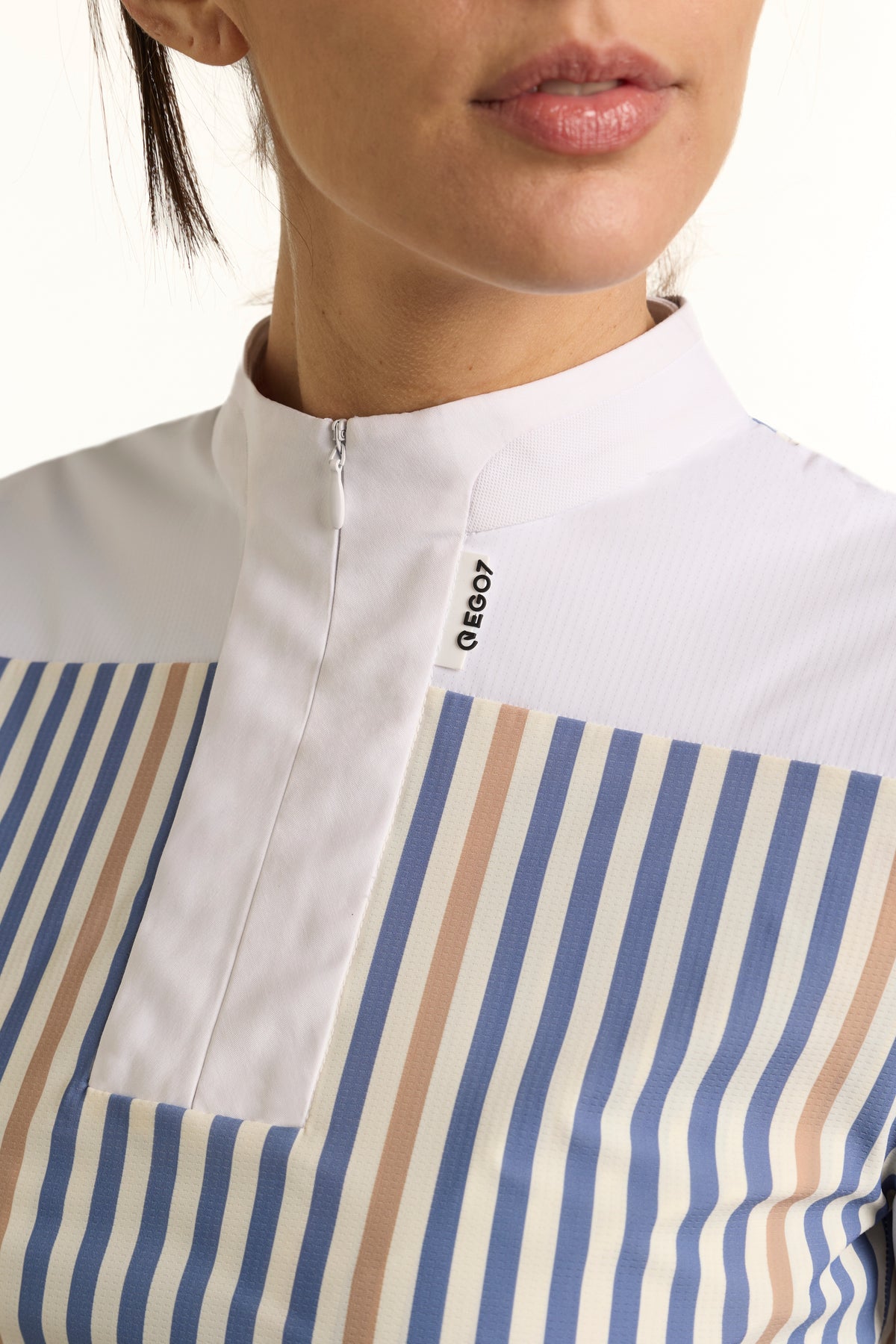 The EGO7 Leila Long-Sleeved Shirt seamlessly combines style and functionality, making it ideal for equestrian sports and active wear. Crafted from a premium technical fabric, its mesh-like yet structured construction ensures excellent breathability, flexibility, and superior moisture-wicking properties to keep you cool and comfortable even during intense activity.