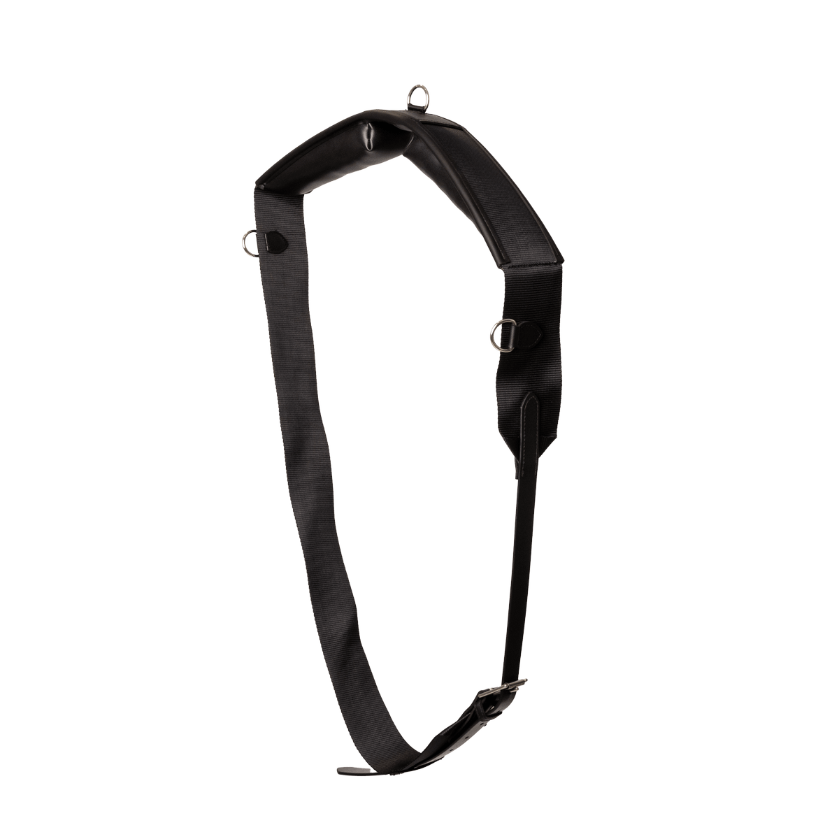 The girth comes with a single strap for simplified handling. It has a 215cm circumference and features a 35cm adjustment range for a tailored fit. Three top rings make it highly versatile for attaching training aids and accessories.