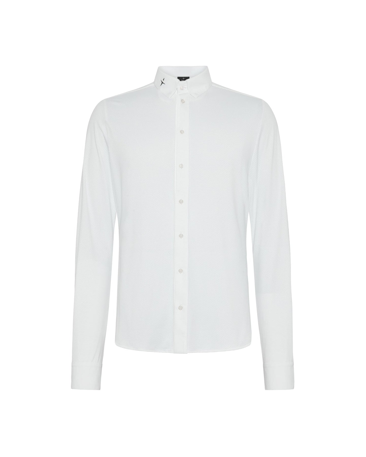 Experience the pinnacle of performance and sophistication with this men's shirt, crafted from advanced Italian Stretch Ions material. Combining superior breathability with exceptional stretch, it delivers both comfort and flexibility for dynamic activities such as equestrian sports. The antimicrobial properties of silver ions help inhibit bacterial growth, reducing odor and maintaining freshness, even during intense physical activity.