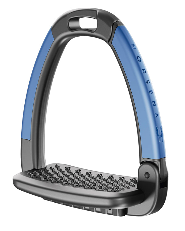 Safe and chic on horseback with the POLY TECH stirrups from Italy! Made with high quality materials the POLY TECH stirrups are designed to ensure comfort and safety. In addition to the exchangeable side pieces in beautiful metallic colors, the stirrup scores with one lateral arm which can open to 90° and is intended to release the foot in the event of a fall. The classic suspension of the stirrup allows a natural leg position. The anatomically shaped tread with a 5° incline helps to keep the heels down and its ergonomic shape promotes automatic positioning of the foot in the center of the stirrup. The perforated structure in combination with the 3D spikes guarantees an optimal grip and quick moisture and dirt removal. In this way, these modern stirrups ensure more safety and also look chic.